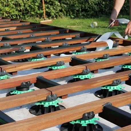 Une bande autocollante de protection d’un rouleau de 20m linéaire et d’une largeur de 80mm qu’il faut juste coller sur les lambourdes du platelage constitutif de la structure de la terrasse avec un résultat totalement invisible permettant également de réduire le grincement du bois ou toutes sortes de résonances liées aux impacts sur le bois.
