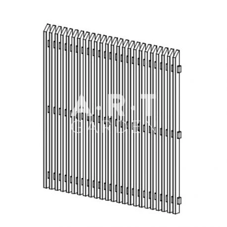 Disponible avec des montants de 27 x 68 mm, et des traverses de 34 x 69 mm rabotées et arrondies, il est proposé sous trois formats : 176 x 176 cm ; 99x 176 cm ; et 176 x 102 cm.