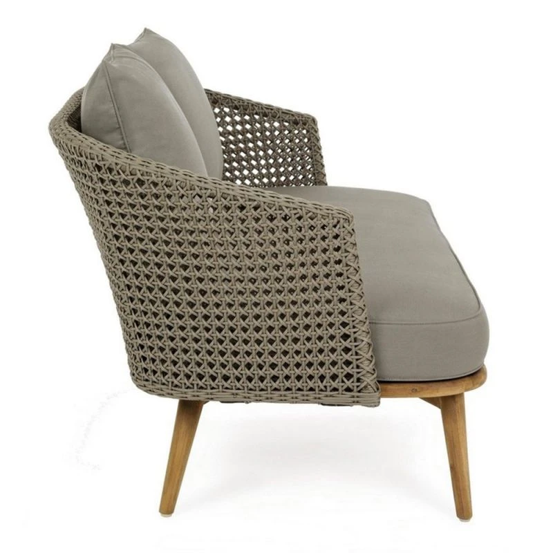 Le canapé 3 places Ninfa est un canapé d’extérieur moderne avec dossier tressé en corde de polyprolène. Son style traditionnel et son coloris sobre sont ses meilleurs atouts. Confortable, le canapé de jardin Ninfa possède une structure en aluminium, des pieds en teck et des coussins en tissu Sunbrella (100% acrylique).