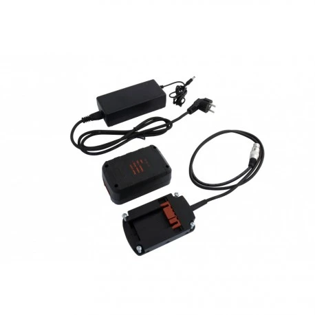 - Composé d’une batterie lithium 36 V – 1,5 Ah et de son chargeur + un support batterie à relier à la table.