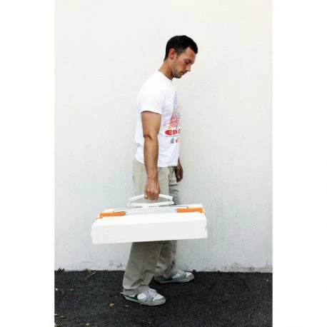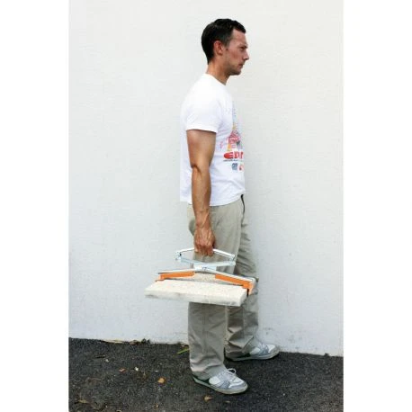 Idéal pour transporter facilement les dalles (béton ou bois) de terrasse. Équipé d’un système de réglage rapide, le porte dalle peut s’adapter à plusieurs dimensions de dalles jusqu’à 665 mm maxi et 280 mm mini avec une charge maxi de 25Kg. L’épaisseur de la pince griffe fait environ 3,5 mm donc le joint doit être supérieur ou égale à 4 mm.