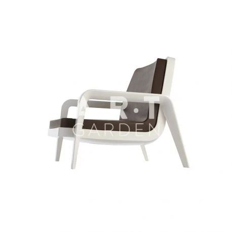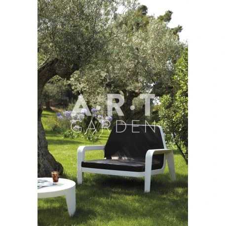 Ce fauteuil est réalisé en polyéthylène avec un coussin d’assise et de dossier en polyuréthane.
