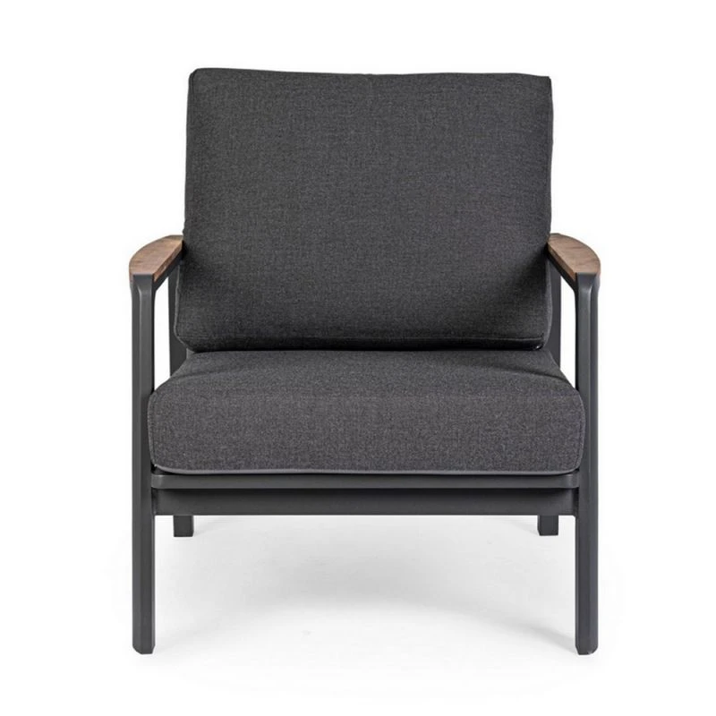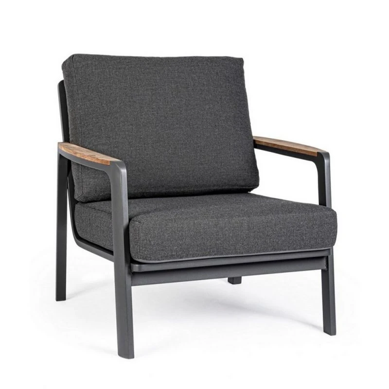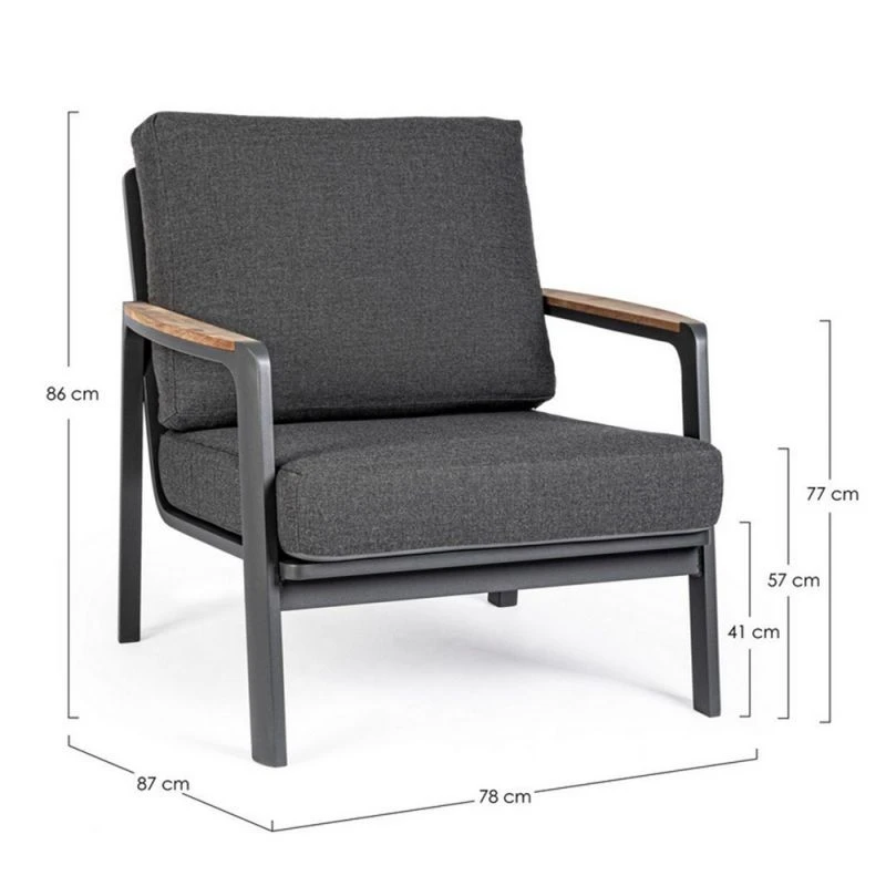 Laissez-vous charmer par le fauteuil de jardin Jalisco anthracite de Bizzotto. Avec son assise basse (41 cm de haut), ce fauteuil d’extérieur est du plus grand confort. Gros coussins en acrylique pour l’assise et le dossier, accoudoirs… Ce beau fauteuil de jardin a le souci du détail. Vous remarquerez les inserts de teck naturel sur les accoudoirs apportant un chic naturel au fauteuil Jalisco. Quant à sa structure, elle se veut robuste, composée à 100% d’aluminium peint en anthracite. Côté praticité, nous ne sommes pas en reste puisque les housses des coussins sont déhoussables pour faciliter leur entretien.