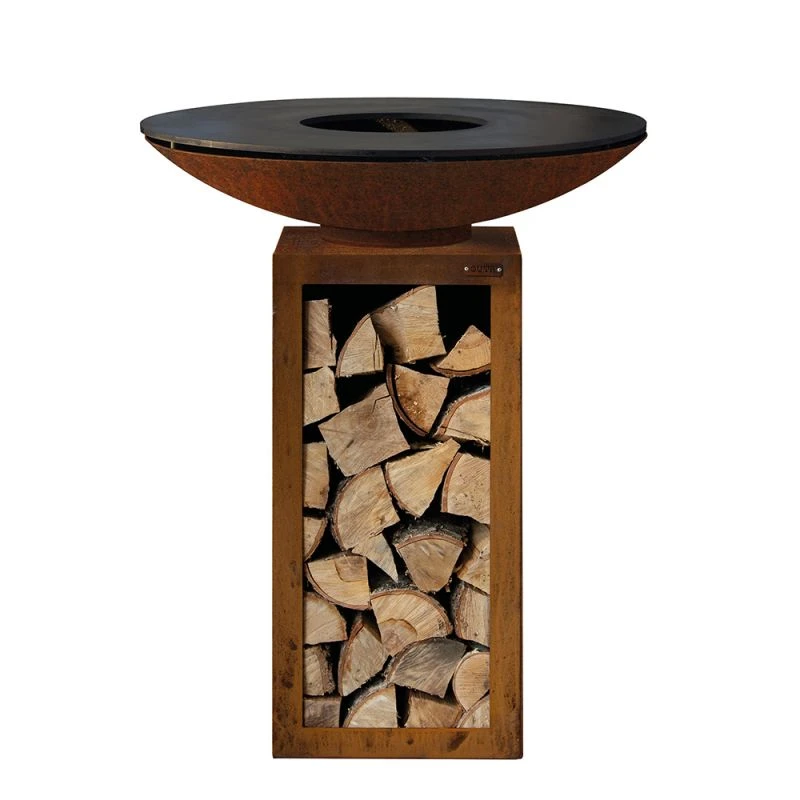 La plancha C100 avec socle ouvert d’OUTR possède des lignes parfaites : large bol à feu de 100 cm, socle ouvert imposant en acier corten… Cuire vos repas en extérieur n’aura jamais été aussi fun et chic. Avec sa plancha de 10 mm en acier carbone amovible, l’entretien de votre plancha C100 est un véritable jeu d’enfant. Quant à son socle ouvert, il est aussi pratique que déco.