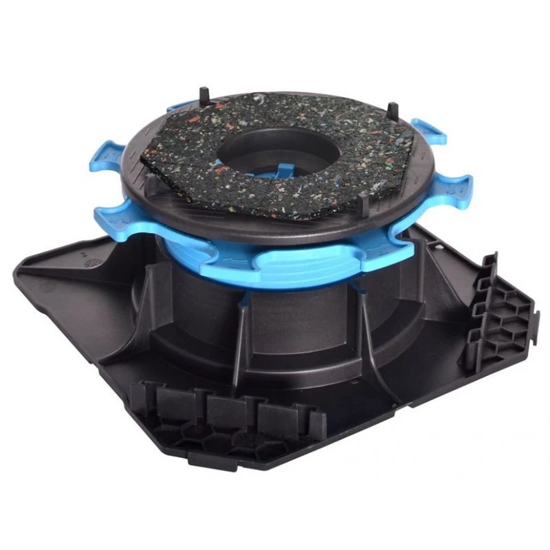 - Double système de réglage pour s’assurer de la stabilité de la terrasse. Soit manuellement grâce à l’écrou, soit en utilisant la clé spécifique une fois les dalles installées. La clé s’insère entre le revêtement et augmente la hauteur de quelques millimètres pour des finitions parfaites ;