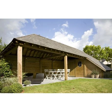 Aménagez un véritable espace de vie autour de votre piscine grâce à cette poolhouse en bois.