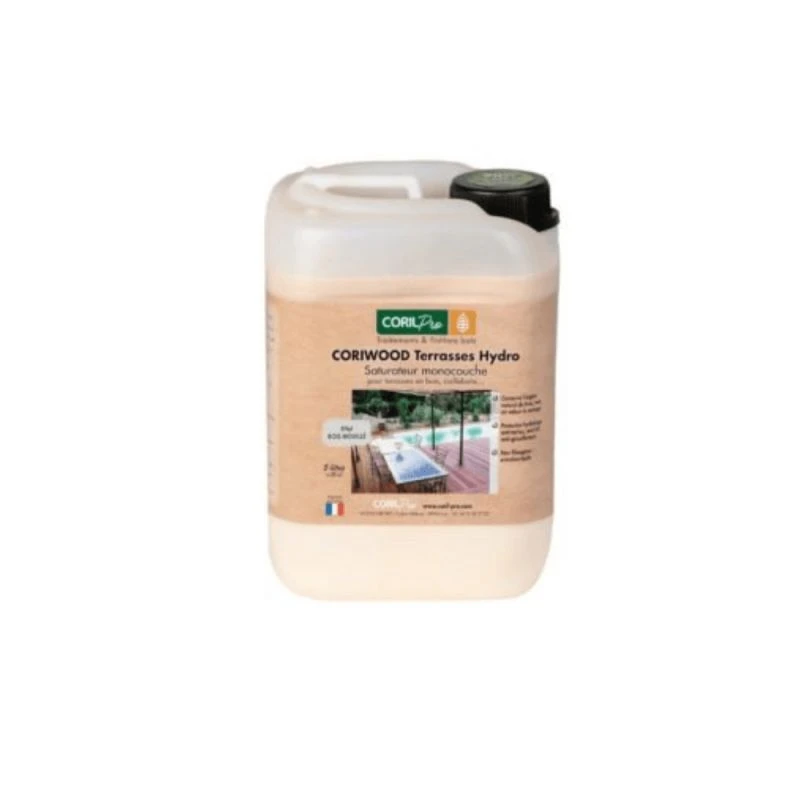 Le saturateur Coriwood de CorilPro dispose d’une qualité professionelle. Efficace en une seule couche, il permet de retrouver une teinte chaleureuse pour votre terrasse préalablement dégrisée. Avec ses deux coloris au choix, retrouvez une teinte chêne moyen ou Ipé aisément !