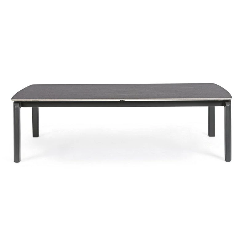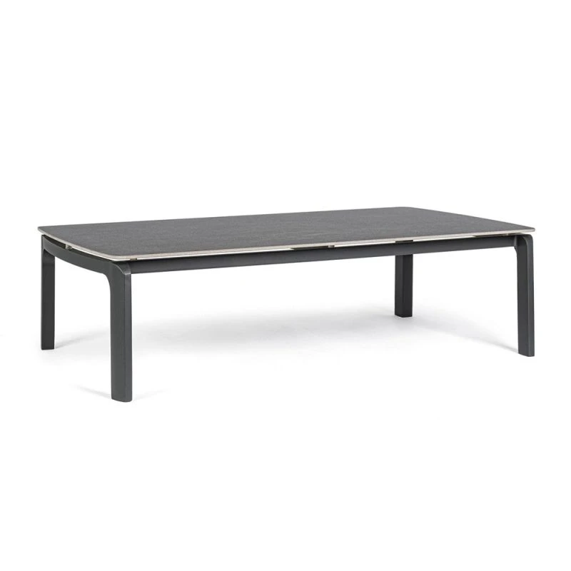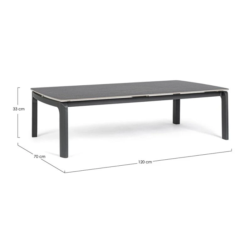 La table basse de jardin Jalisco et son plateau en céramique gris, sa structure en aluminium gris anthracite est une table basse d’extérieur haut de gamme. Avec son large plateau (120 x 70 cm), elle accueillera avec classe vos apéros conviviaux et vos petits déjeuners dominicaux.