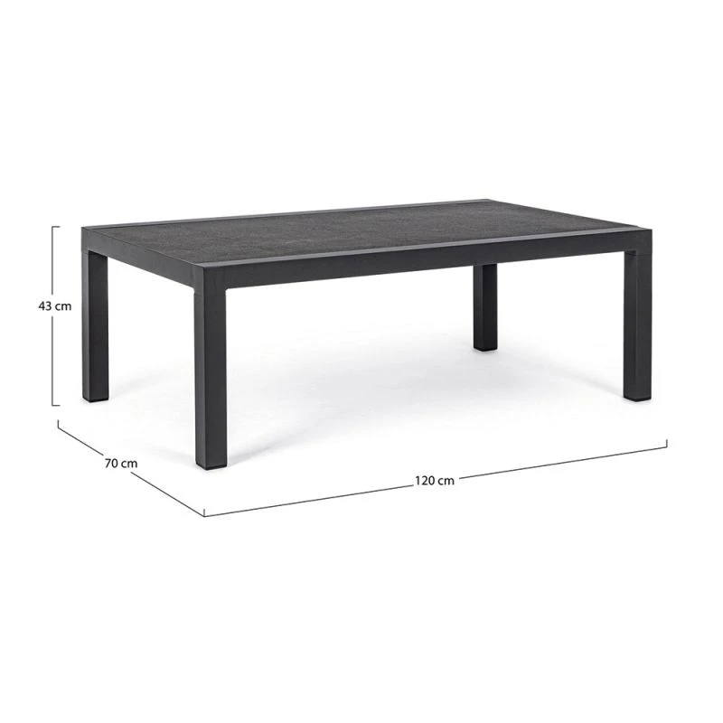 Table basse rectangulaire de Bizzotto, Kledi est une table basse d’extérieur. En total look anthracite pour un effet ultracontemporain.