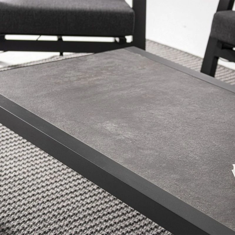 La table basse de jardin Kledi avec son plateau de 10 mm en céramique gris et sa structure en aluminium anthracite est de bonne facture. La qualité de ses matériaux, ses lignes minimalistes en font une table basse de jardin haut de gamme qui apportera une touche contemporaine à votre terrasse.