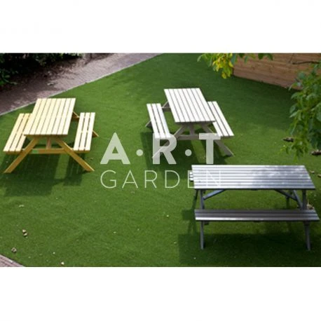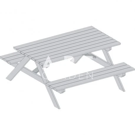Elle est livré en kit avec sa quincaillerie, les bancs et la table étant pré-montés.